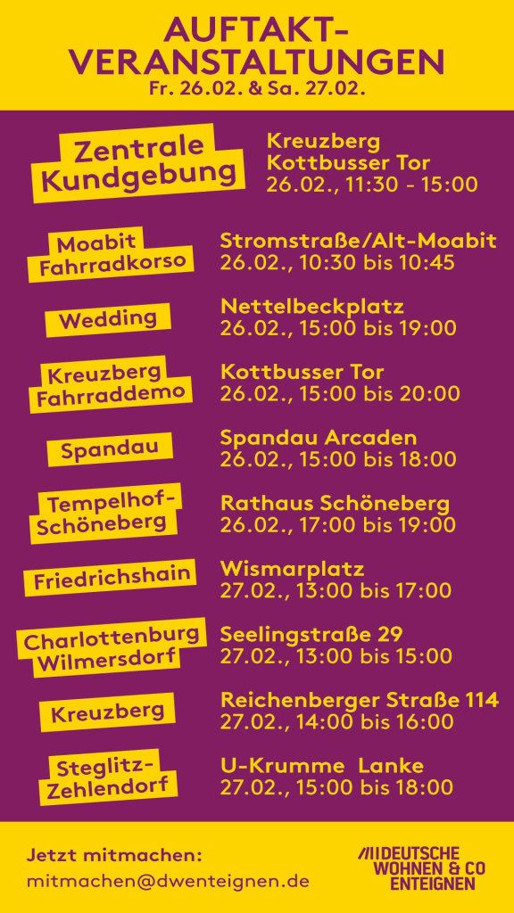 Es folgt der Text, wie er von der Initiative in Facebook hinsichtlich des morgigen Tages erstellt wurde (Veranstaltung von Deutsche Wohnen & Co Enteignen).