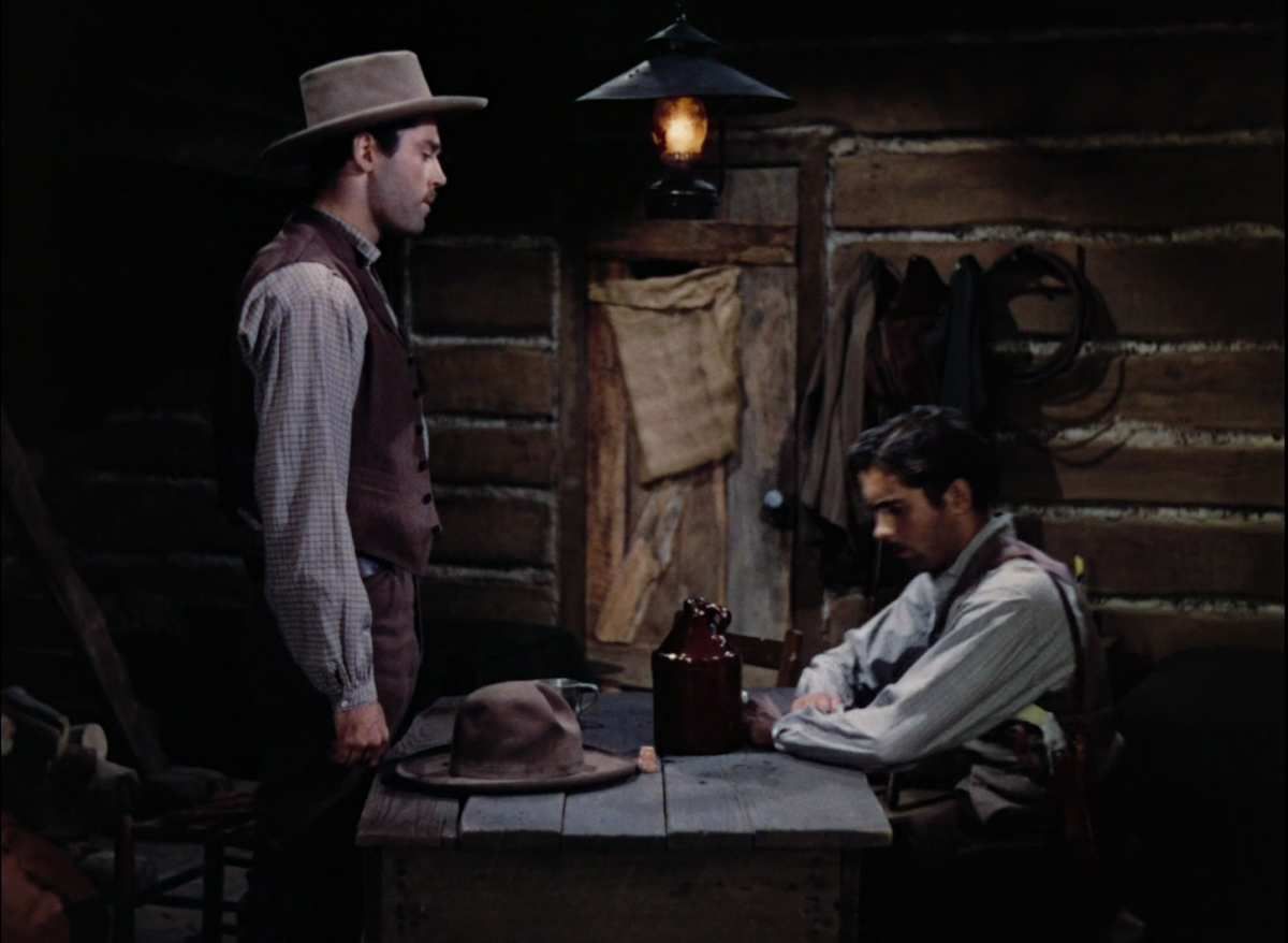 Es gibt weitere Anklänge an die Realität, etwa die Person Zerelda James (Susan), die aber in Wirklichkeit nicht die Tochter eines örtlichen Zeitungsherausgebers, sondern James‘ Kusine war, die er gleichwohl heiratete, einen Überfall auf das Haus der James-Brüder, bei dem deren Mutter verletzt wurde. Aber insgesamt liegt der Realitätsgehalt des Films bei vielleicht einem Drittel, selbst wenn man die historischen Figuren Frank und Jesse James hinzunimmt, um die sich der Film dreht. Aber auch die Art, wie an das Thema herangegangen wurde, ist verblüffend und wenn die Genres in der Hinsicht nicht strikt voneinander getrennt würden, könnte man auch von einem Film noir im Western-Gewand sprechen, allerdings schon 1939 in Farbe gefilmt (2) und mittlerweile sehr schön restauriert.