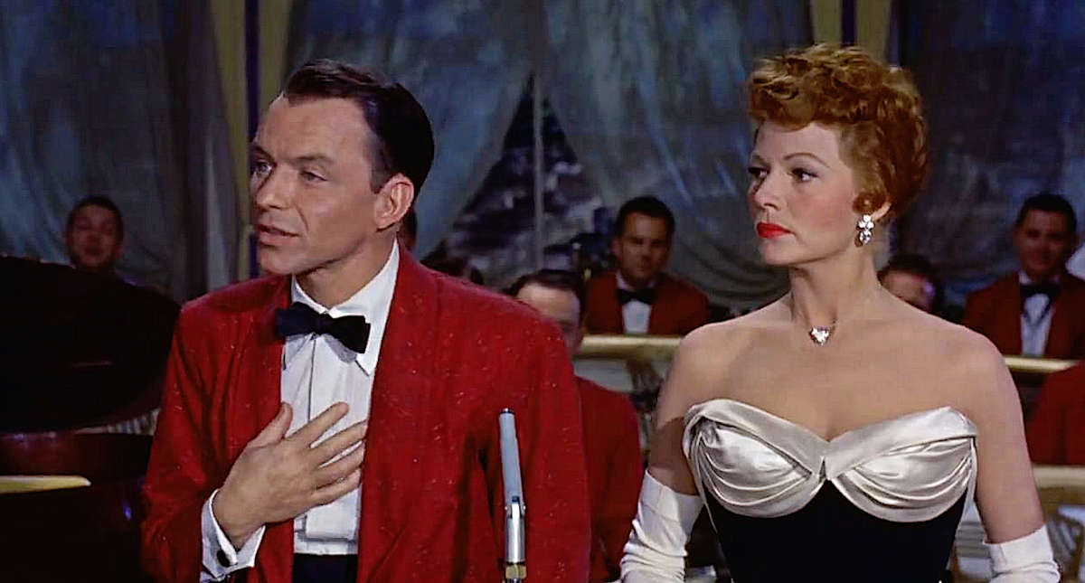 Mit der Columbia, die ihn produziert hat, schlossen die öffentlich-rechtlichen deutschen Sender nicht, wie mit MGM, vor langer Zeit einen großen Vertrag ab, der Tausende von Filmen hierherbrachte. Dass das Gefühl dennoch so bekannt ist, liegt vor allem daran, dass der Film Frank Sinatra zeigt, der vielfach für MGM gearbeitet hat, dass die Choreografie von Hermes Pan stammt, der einige der schönstem Musicals mit Fred Astaire oder das fantastisch designte „Kiss me Kate“ (1953) verantwortete und sicher auch an der Regie des Musicalspezialisten George Sidney, der Frank Sinatra schon einmal in „Anchors Aweigh“ (1945) zusammen mit Gene Kelly vor der Kamera hatte und für MGM „Die drei Musketiere“, den bezüglich seines Rhythmus und einer Beschwingtheit vielleicht musikalischsten Abenteuerfilm aller Zeiten gemacht hat, ebenso wie „Showboat“ (1951) und den erwähnten „Kiss me Kate“, wie wir gerade nachgesehen haben – keine Überraschung.