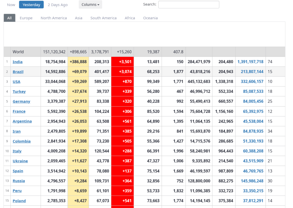 Wir hatten heute schon ziemlich viel Text zu verfassen, aber dieser Beitrag muss leider sein. Deutschland hat es wieder einmal geschafft, bei den Zahlen der Corona-Pandemie weit vorne zu landen. Nicht bei den Zahlen, die auf eine gute Bekämpfung schließen lassen, sondern bei den Neuinfektionen. Platz fünf weltweit am gestrigen Tag ist eine Klatsche für die hiesige Corona-Politik, die immer noch nicht den Ernst der Lage erkannt hat.