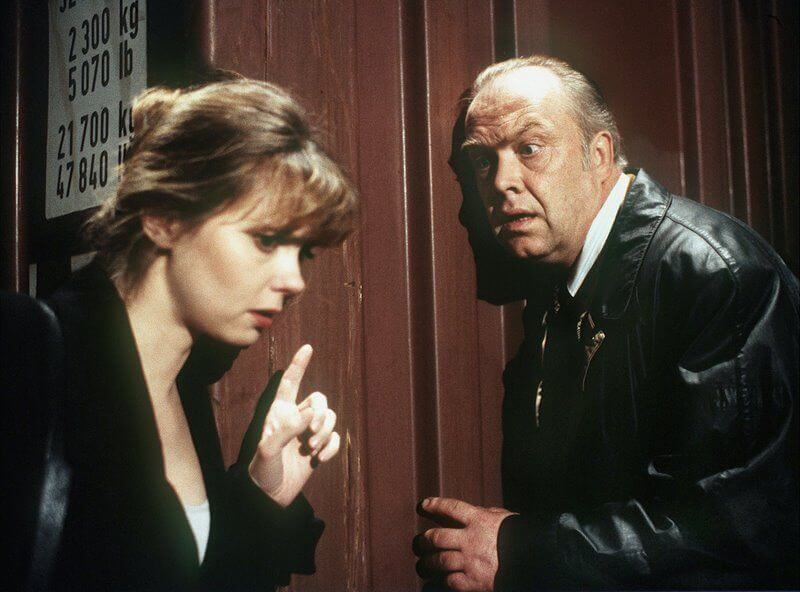 Der Film fängt ziemlich düster an, steigert sich schnell hin zum Mord, trotzdem ist der Verlauf nicht ganz typisch, weil wir das Mädchen noch kurz kennenlernen dürfen, bevor sie achtlos in den Rhein geworfen wird oder in ein Hafenbecken. Ihr Tod war nicht beabsichtigt, aber es tut dem bösen Kurt und dem rohen „Stippe“ auch nicht besonders leid, das sind halt Kollateralschäden in einem harten Geschäftszweig. Udo Kier spielt diesen Typ genauso überdehnt, wie sein ganzes Setting dargestellt wird, aber offenbar musste es mal sein, dass es wieder endlich solche Fieslinge gibt, nachdem der Tatort mehr und mehr dazu tendierte, schuldlos Schuldige zu präsentieren und keine handfesten Räuberpistolen mehr hervorzubringen, wie in der Anfangszeit. Ausnahme: Die Ost-Tatorte mit Ehrlicher, diese haben sich um die sachgerechte Porträtierung megaschlimmer Wessis sehr verdient gemacht. Exakt so einer ist Kurt, nur, dass er in Düsseldorf geblieben ist. Den Flemming, der dort ermittelt, mag ich recht gerne, weil er sein Team (anfangs mit Max Ballauf war es ein Dreierteam) immer sehr sozial behandelt und schützt, später gilt das nur noch für Miriam Koch, die in „Das Mädchen mit der Puppe“ ebenso wie Flemming recht knapp gehalten wird, spielzeitmäßig, weil der böse König und die jungen Menschen, die weit weg von zu Hause unter schlimmen Umständen klarkommen müssen, mehr in den Mittelpunkt gerückt werden. Das ist vor allem möglich, weil der Film kein Whodunit ist, sondern ein Howcatchem. Man weiß als Zuschauer vom Moment der Tat an, wer das Mädchen umgebracht hat, es geht nur noch darum, wie man der Mörder habhaft wird.