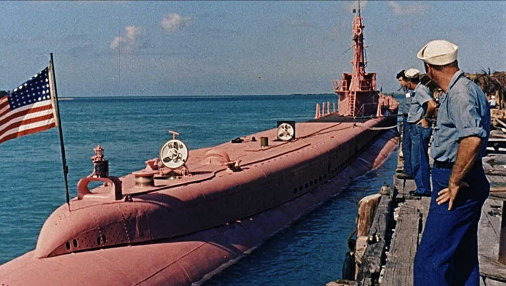 Als wir „Unternehmen Pettiocoat“ jetzt noch einmal angeschaut haben, fanden wir viele Gags immer noch amüsant, andere aber haben etwas von ihrem Reiz verloren. Auf jeden Fall war es faszinierend anzuschauen, wie sich der Hollywood-Film in kleinen oder größeren Schritten im Verlauf der 1950er Jahre immer mehr aus sehr engen Vorgaben und konservativen Mustern befreite und wie elektrisierend im Wasser schwimmende, von der Mannschaft eines Zerstörers aufgegabelte Damenunterwäsche damals gewesen sein muss. Heute heute wirkt das nostalgisch-gemütlich, wie die gesamte Handlung des Films, in der es mitten im Pazifikkrieg nicht einen einzigen Toten gibt. Natürlich, sonst wäre es ja allenfalls eine Tragikomödie geworden. Die Wikipedia hat sich eigenständig um eine Zusammenfassung bemüht, die wir anlässlich der Veröffentlichung der Kritik im Jahr 2021 nicht unter den Tisch fallen lassen wollen:
