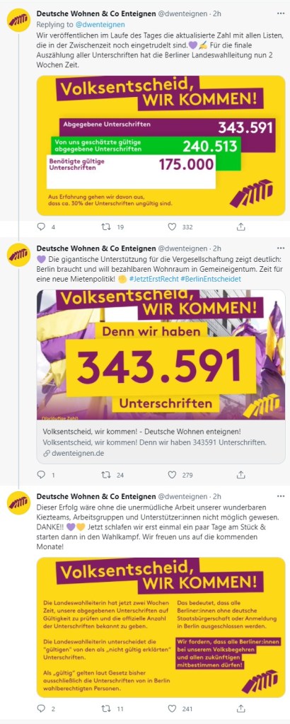 Hingegen hat Die Linke von Berlin gestern über 33.000 gesammelte Stimmen für die Initiative „Deutsche Wohnen & Co enteignen“ überreicht, herzlichen Glückwunsch zu diesem beeindruckenden Engagement auch von uns.