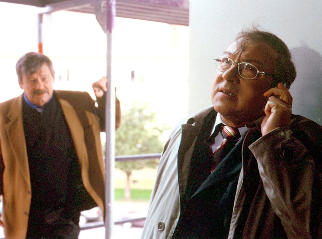 Man kann auch viel über die gesammelten Charakterschwächen nachdenken, die zum Tod des einen Jungen geführt haben, insofern würde ich die erwähnten Varianten nicht per se unterschiedlich bewerten. Aber die schmerzliche Dichte und das unabwendbare Desaster, das Psychodrama, das in einigen Vorwende-Filmen der Reihe inszeniert wurde, das lassen die Schmücke-Schneider-Polizeirufe nie zu, weil die auf ihre Weise robusten und gesettelten Ermittler immer dazwischen stehen und die Zuschauer*innen auf ihre Weise beruhigen und auf Distanz zu den Schicksalen der Opfer halten können. Dass Schneider auch gerade von seiner Frau verlassen wird, passt zwar formal gut in diesen Film, hindert ihn aber nicht daran, seiner Arbeit wie gewohnt gewissenhaft nachzugehen. Das suggeriert auch, dass ein guter Typ auch mit solchen Situationen fertig werden kann, Gleiches gilt für Schmücke, als ihn Edith ein paar Jahre später vor die Tür setzt, und an dieser Suggestion, die immer wieder das Schicksal von Opfern relativiert, die man in jenen Filmen sieht, auch von Menschen, die als nicht so sortiert gezeigt werden, wage ich Zweifel anzumelden. Trotzdem ist „Mama kommt bald wieder“ ein Tatort, der auch bei mir im Vergleich zu anderen Halle-Tatorten aus der „mittleren“ Periode der beiden Herberts mehr Emotionen ausgelöst hat.