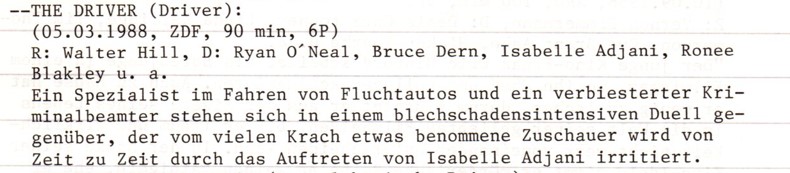 Ganz sicher ist „Driver“ gegenüber „Drive“ (2011), der erkennbar auf ihm basiert, harmloser inszeniert und „Drive“ habe ich als einen sehr guten Neo-Noir gewürdigt, auch, weil u. a. die kompetente Darstellung des Fluchtfahrers durch Ryan Gosling verhindert hat, dass ich an den falschen Stellen lachen musste.
