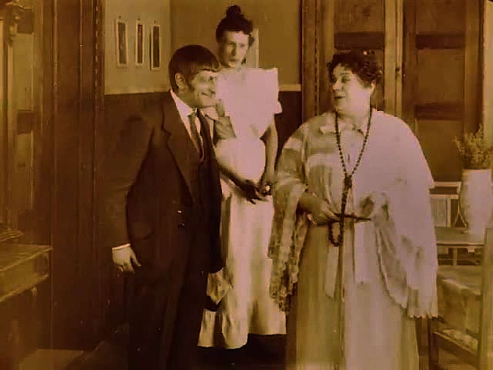 Ist dieser auch schon in „Als ich tot war“ zu verspüren? Nun ja, wenn man vom Allgemeinen ins Besondere hineinsticht und so herangeht: Der Film ist von Lubitsch, also muss der Lubitsch-Touch doch schon irgendwo in ihm angelegt sein. Der Rollentausch, die seltsame Szene im wackeligen Kulissen-Auto mit der Schwiegermutter, das Gepräge des gesamten häuslichen Szenarios, darin kann man eine Handschrift erkennen, die noch subtiler werden würde, aber ich habe zum Beispiel nicht so recht verstanden, was an der Szene im Auto so peinlich gewesen sein soll, dass die Schwiegermutter sich daraufhin zum Verschwinden nötigen lässt. Es gibt vor allem für diesen Kuss oder whatever es darstellen soll über Standesgrenzen und Altersgrenzen hinweg keine Zeugen. Die Idee an sich muss damals aber schon recht offensiv gewesen sein und das zeitgenössische Publikum hatte einen anderen Zugang zu Übertretungen als zum Beispiel der hier schreibende Rezipient des Jahres 2022.