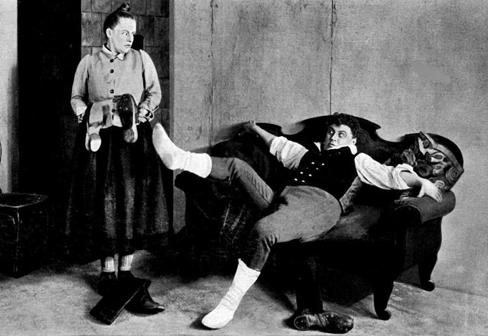 „Where are my Slippers?“ Wer hat das gesagt? Professor Higgins zu Eliza Doolittle am Ende von „My Fair Lady“. Damit war die ganze Emanzipation futsch. Genau das Gleiche passiert schon 44 Jahre zuvor in diesem Stummfilm von Ernst Lubitsch. Ebenfalls auf Englisch, denn die Version, die ich angeschaut habe, war mit englischen Zwischentiteln versehen. Im Film wird der wilde Bruder übrigens immer Xaver genannt, nicht Peter. Irgendwie passt das auch, ich musste ständig an Xaver Unsinn denken, aber mehr an mit einer Assoziation hin zu dem Unsinn des derben Bauernburschen Xaver als an den Mann, der diesen Namen trägt. Xaver wird von niemand anderem gespielt als von Emil Jannings, der wirklich ein sehr kompletter Schauspieler war, das sieht man an den sehr unterschiedlichen Rollen, in denen er reüssieren konnte, zuletzt hatte ich ihn als sonnigen Ludwig XV. in „Madame Dubarry“ gesehen, ebenfalls unter der Regie von Ernst Lubitsch. Und die beiden Kolhiesel-Töchter werden von Henny Porten verkörpert, der Nummer eins unter den deutschen Filmstars der 1910er Jahre, der unter den in der Filmstadt Berlin arbeitenden Künstlerinnen höchstens die Schwedin Asta Nielsen Konkurrenz machen konnte, die einen anderen Typ verkörperte. Der Film ist also so hochkarätig besetzt, wie es im frühen deutschen Kino irgend möglich war und wurde ein großer Erfolg.