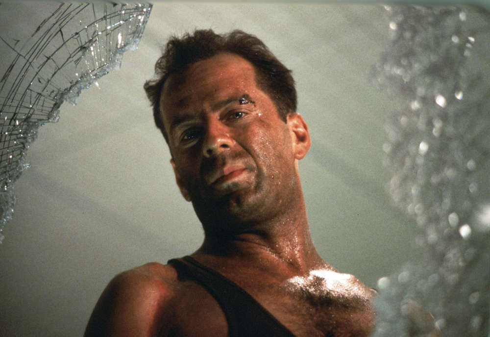 Die Idee mit den Terroristen aus Deutschland wird Bruce Willis, der selbst zur Hälfte einen deutschen Hintergrund hat, schon zu nehmen gewusst haben und irgendwie sind solche Typen mehr Fun, wenn ein bisschen auf die nationalistische Pauke gehauen wird, als wenn sie simple, wenn auch noch so gewieft agierende Verbrecher wären. Sie auch die „arischen“ Bösewichte aus Südafrikas damaligem Apartheids-Regime in „Lethal Weapon 2“. Im Grunde ist dieser Hintergrund überflüssig, es hätte auch einfach nur um den ganz großen Coup gehen können, der mit aller Brutalität durchgezogen wird. Wobei ursprünglich, abgesehen vom Firmenchef, keine Todesfälle geplant waren. Soweit ich es in Erinnerung habe, kommt auch keine der Geiseln ums Leben, weil die Geiselnehmer vergleichsweise mit diesem Druckmittel umgehen. Die Praxis zeigt längst viele Fälle, in denen Geiseln als menschliche Schutzschilde verwendet wurden.
