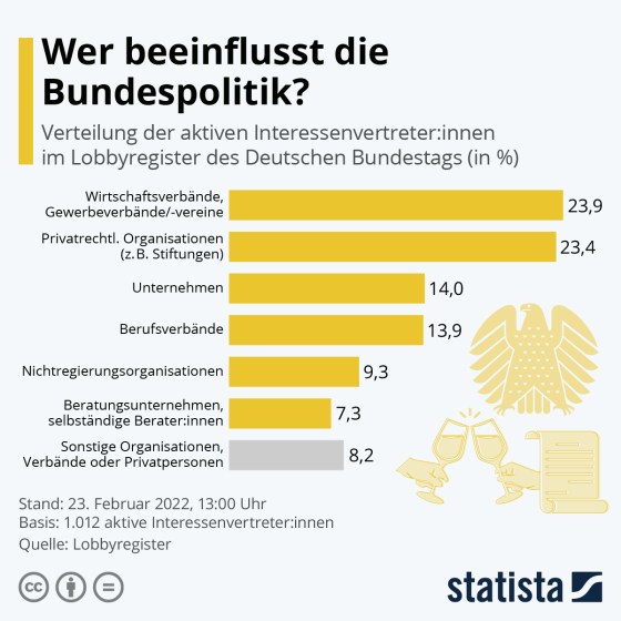 Wer beeinflusst die Bundespolitik? Das Lobbyregister ist fast fertig | Frontpage | Demokratie in Gefahr | #Statista #Lobbyisumus #Bundespolitik