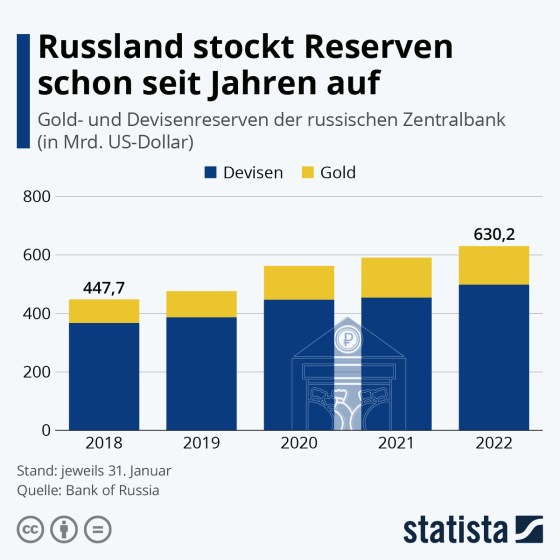 Russland in Wirtschaftszahlen: Hohe Reserven, wenig Exzellenz, kaum Progress +++ Putins Weltmachtträume und wirtschaftliche Realitäten +++ Nationalismus als Droge | Frontpage | Weltpolitik, Weltwirtschaft | Gold- und Devisenreserven, Kriegsvorbereitungen, Handelspartner