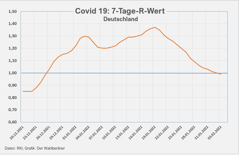 Corona-Report 34/22 | R 1,00 – vorerst +++ Lockerungen – vor Ostern? | Lage, Daten, Service, Politik – DER WAHLBERLINER