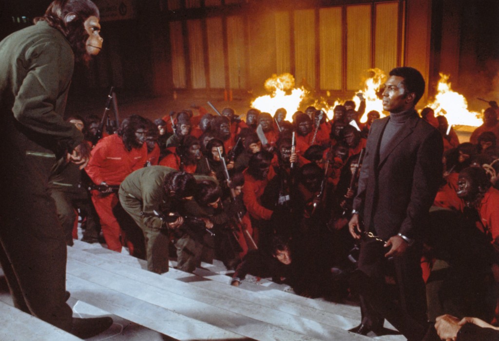 Man mag dem Film zugutehalten, dass er unter dem Einfluss des Civil Rights Movements der 1960er Jahre, unter der Ägide des 1972 schon als verloren geltenden Vietnamkrieges und des geradezu apokalyptisch rasanten Zerfalls der politischen Kultur mit den vielen Morden der 1960er, der ebenso rasanten gesellschaftlichen Umwälzungen eine humanistische Botschaft im Stil der Zeit vertitt, wenn auch zugunsten von Affen, nicht von Menschen, weil die Menschen ja selbst als inhuman dargestellt werden. Der Gouverneur, der einen quasi-faschistischen Staat mit Sicherheitskräften, die nicht von ungefähr SS-Männern ähneln, regiert, eine kalte Welt, die in der Tat vom Layout einiges mit den echten 1990ern gemeint hat, die hier vorweggenommen werden, das ist schon ein wenig krude, wenn man bedenkt, dass nur 20 Jahre seit Ziras und Cornelius‘ Tod vergangen sind.