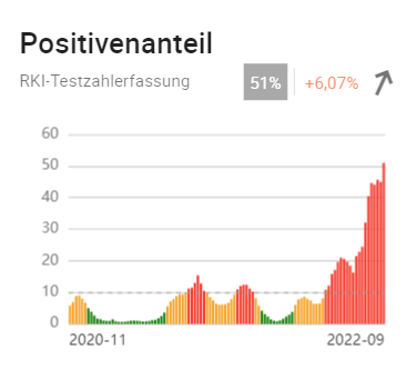 Heute haben wir eine weitere, 9. Grafik ins Programm genommen, sie stammt direkt vom RKI und benennt die Positivrate bei den Tests. Der aktuelle Stand wirkte auf uns durchaus überraschend.