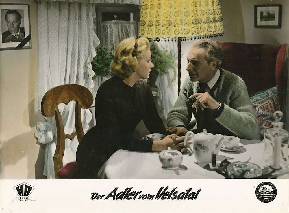 Bereits im Frühstadium unserer Befassung mit dem Medium Film und ohne die oben zitierten Rezensionen zu kennen, war uns immerhin aufgefallen, dass dieser Berg-Heimatfilm kein Meisterwerk ist. Wir haben bisher im Rahmen der Durcharbeitung des „Filmverzeichnis Nr. 8“ aus dem Jahr 1989 nur wenige Heimatfilme besprochen, weil sie schon damals nicht das Zentrum unserer Interesses darstellten. Typisch für die Produktionen der Zeit war „Der Adler vom Velsatal“ aber sicherlich mehr als die Streifen, die heute noch einen gewissen Bekanntheitsgrad aufweisen. In einigen davon spielt auch Waltraud Haas, die hier die weibliche Hauptrolle innehat und eine der beliebtesten Schauspielerinnen in diesem deutsch-österreichischen Spezialgenre war (u. a. Hauptrolle in der sehr erfolgreichen 1960er Verfilmung von „Das weiße Rössl vom Wolfgangsee“).