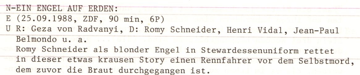 Ein Engel auf Erden ist ein deutsch-französischer Spielfilm von 1959. Es gab diesen Film in zwei Fassungen, eine die auf dem deutschen Markt lief und eine ganz andere. Der Film wurde also zweimal gedreht, immer mit kleinen Änderungen bzw. längeren oder kürzeren Szenen. Darin verkörpert Romy Schneider einen Schutzengel, der im Körper einer Stewardess seinem Schützling zu seinem Glück verhelfen will. Die französische Version trägt den Titel Mademoiselle Ange.