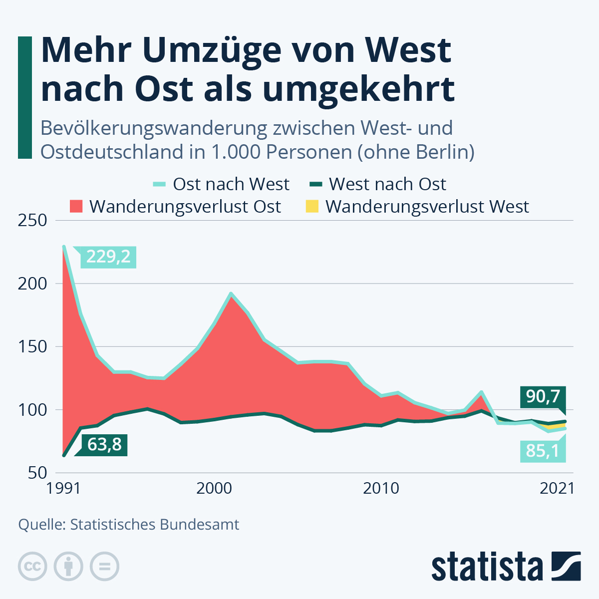 Infografik: Mehr Umzüge von West nach Ost als umgekehrt | Statista
