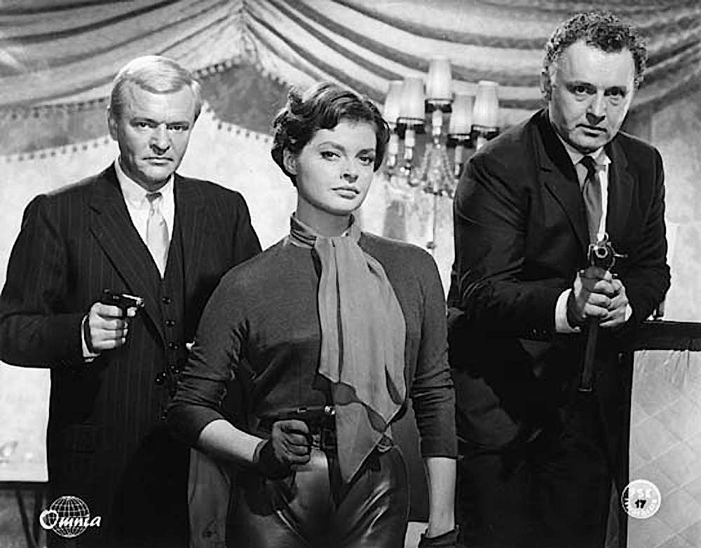 Französisch-italienische Filme (oder umgekehrt) haben hingegen oft eine sehr packende Ausformung und zeigten zu der Zeit Darsteller wie Jean Gabin oder Lino Ventura – oder Jean Servais, den Hauptdarsteller des berühmten „Rififi“. Nadja Tiller war nach dem Erfolg von „Das Mädchen Rosemarie“ in Deutschland ein Topstar und Peter van Eyck ist generell für mich einer der besten im damaligen deutschsprachigen Kino. Er konnte sowohl positive wie negative Rollen überzeugend verkörpern könnte und einer der wenigen in Deutschland war, denen man damals etwas wie eine virile Präsenz bescheinigen konnte (weitere Ausnahme: Curd Jürgens).