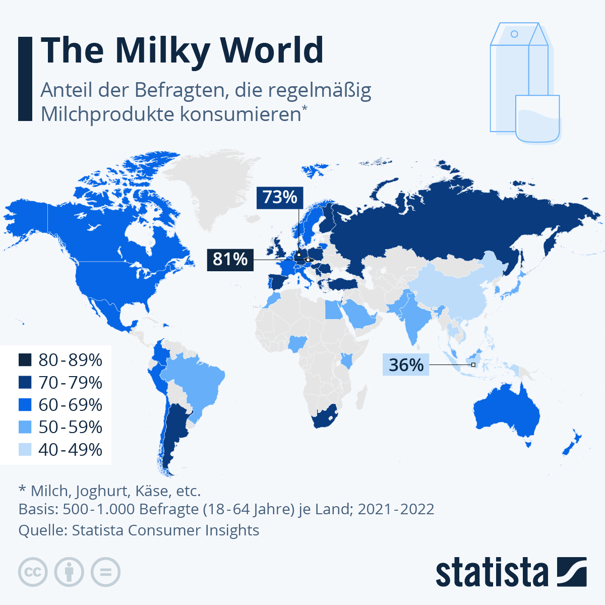 Heute ist bei uns Informationstag für an Wirtschaft, der Wandel hin zur Nachhaltigkeit und an Verbrauchernews interessierte Menschen. Es hat sich zufällig so ergeben, weil eine ganze Staffel von aktuellen Statista-Grafiken sich mit der Milchwirtschaft befasst.