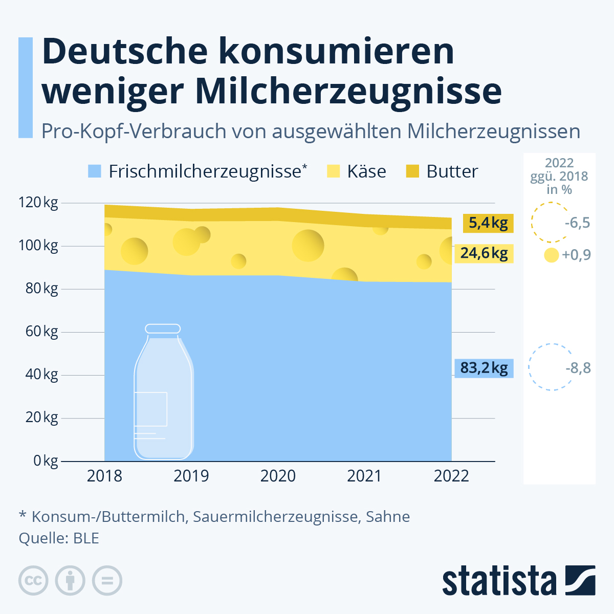Infografik: Deutsche konsumieren weniger Milcherzeugnisse | Statista