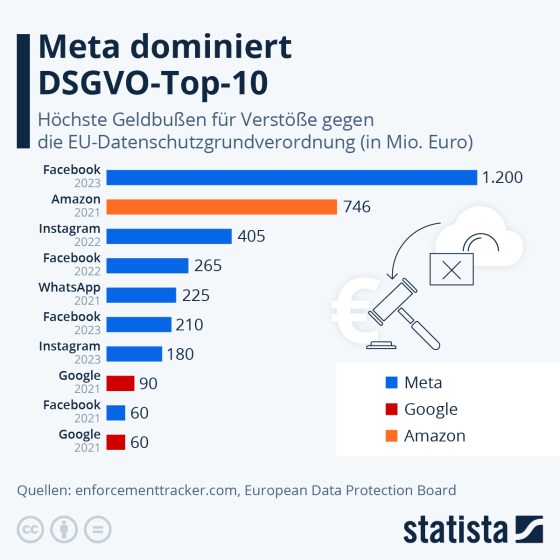 „Meta dominiert die DSGVO-Top 10“ +++ 5 Jahre DSGVO (Statista + Kommentar) | Briefing 198 | Wirtschaft