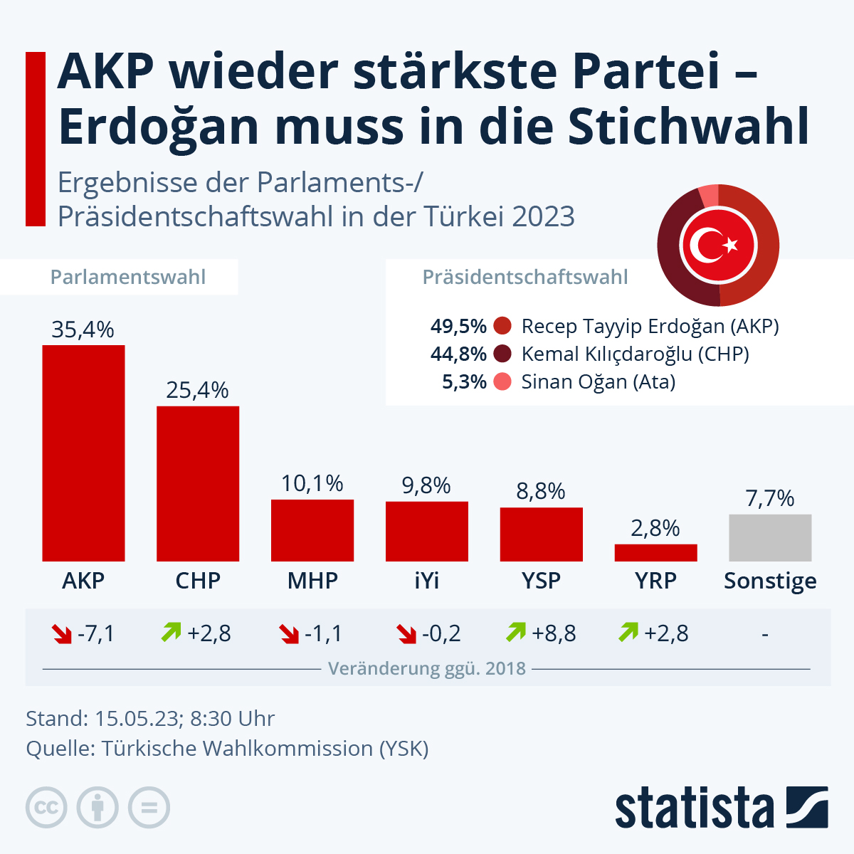 Infografik: AKP wieder stärkste Partei – Erdoğan muss in die Stichwahl | Statista
