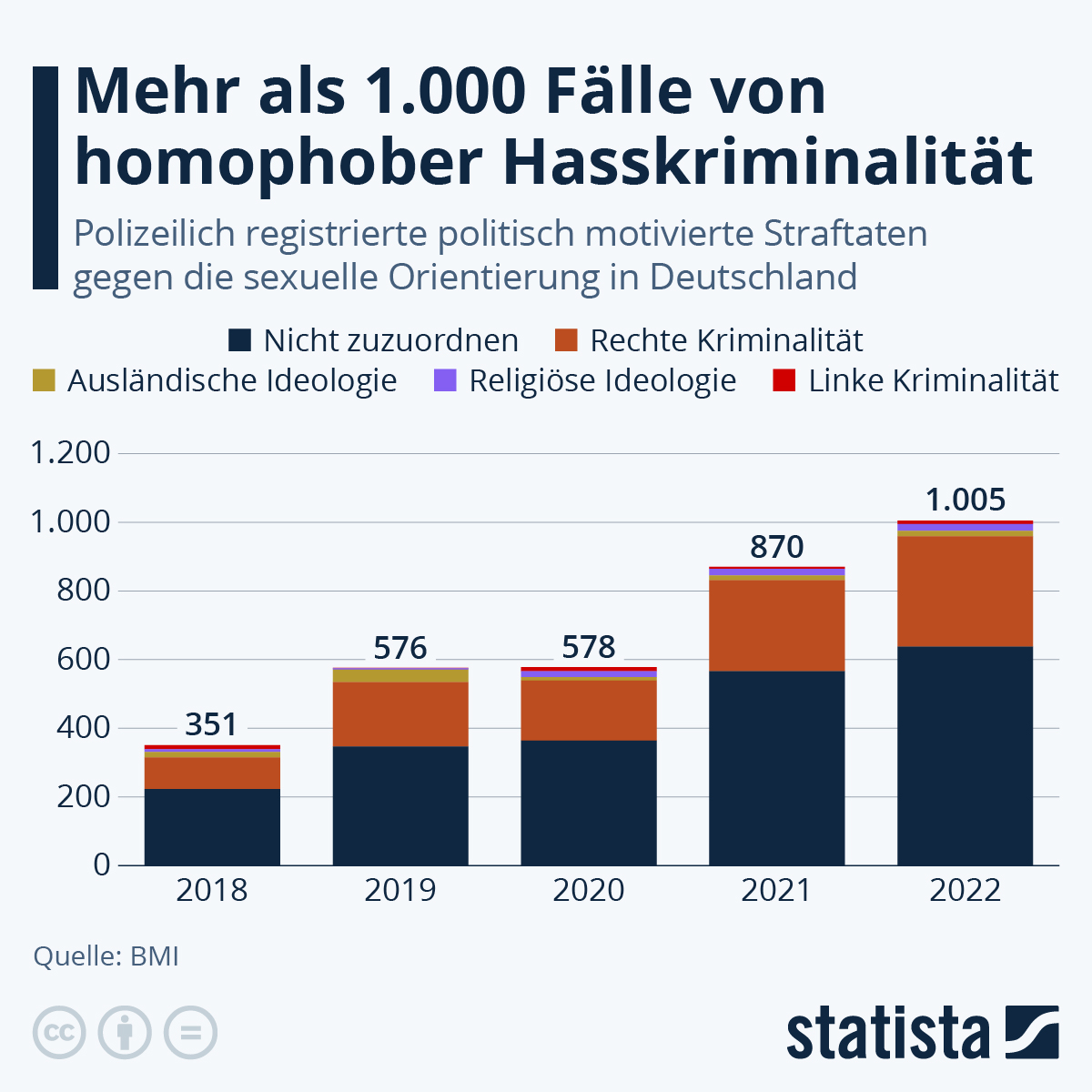 Infografik: Mehr als 1.000 Fälle von homophober Hasskriminalität | Statista