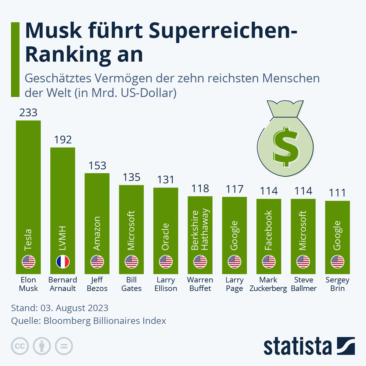 Infografik: Musk führt Ranking der Superreichen an | Statista