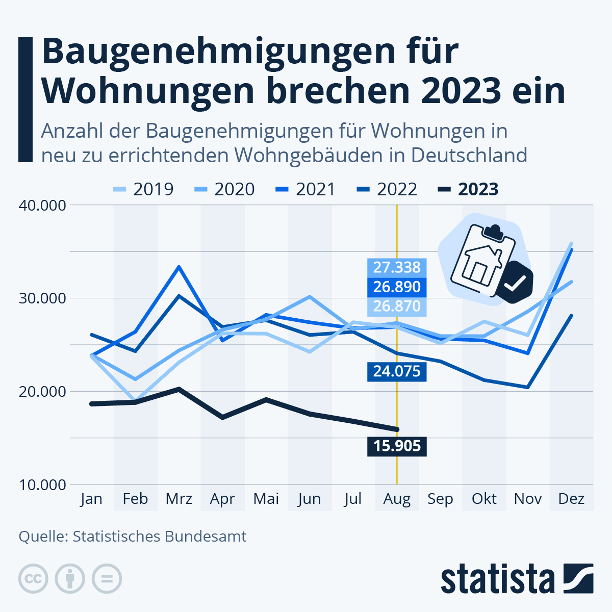 Baugenehmigungen für Wohnungen brechen 2023 ein.
