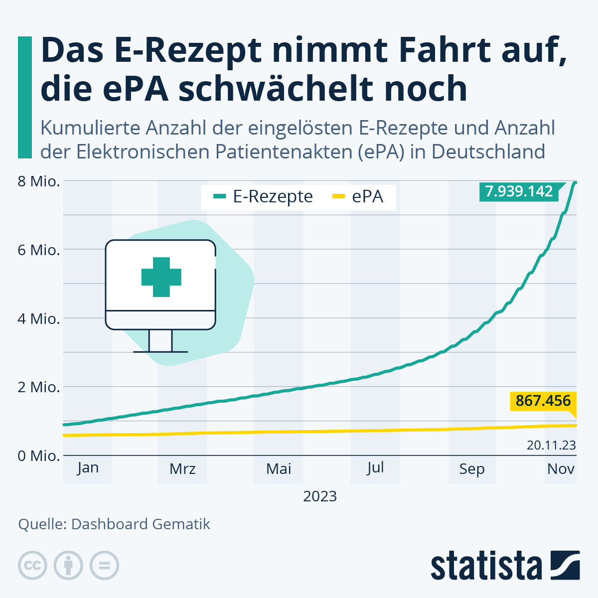 Infografik: Das E-Rezept nimmt Fahrt auf, die EPA schwächelt noch | Statista