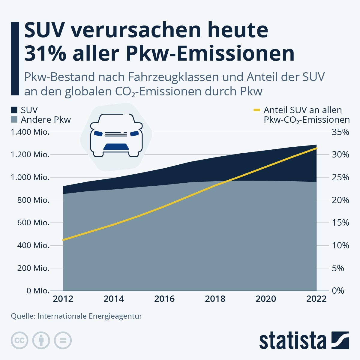 Infografik: SUV verursachen heute 31% aller PKW-Emissionen | Statista
