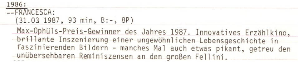 Auch ein Ophülspreisträger kommt nicht immer in der Wikipedia vor, daher fehlt dieses Mal der Sammel-Absatz oberhalb unseres Rezensionstextes aus dem Filmverzeichnis Nr. 8 von 1989. Auch die folgenden Produktionsdaten stammen in diesem Fall vom Filmdienst.