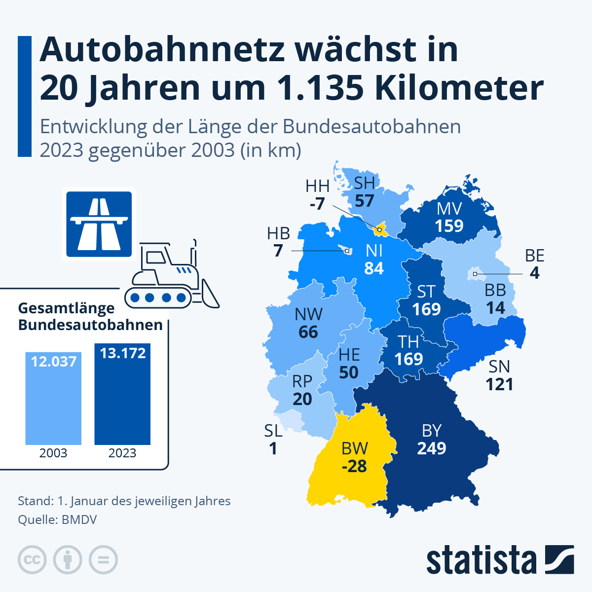 Infografik: Wie lang ist das deutsche Autobahnnetz? | Statista