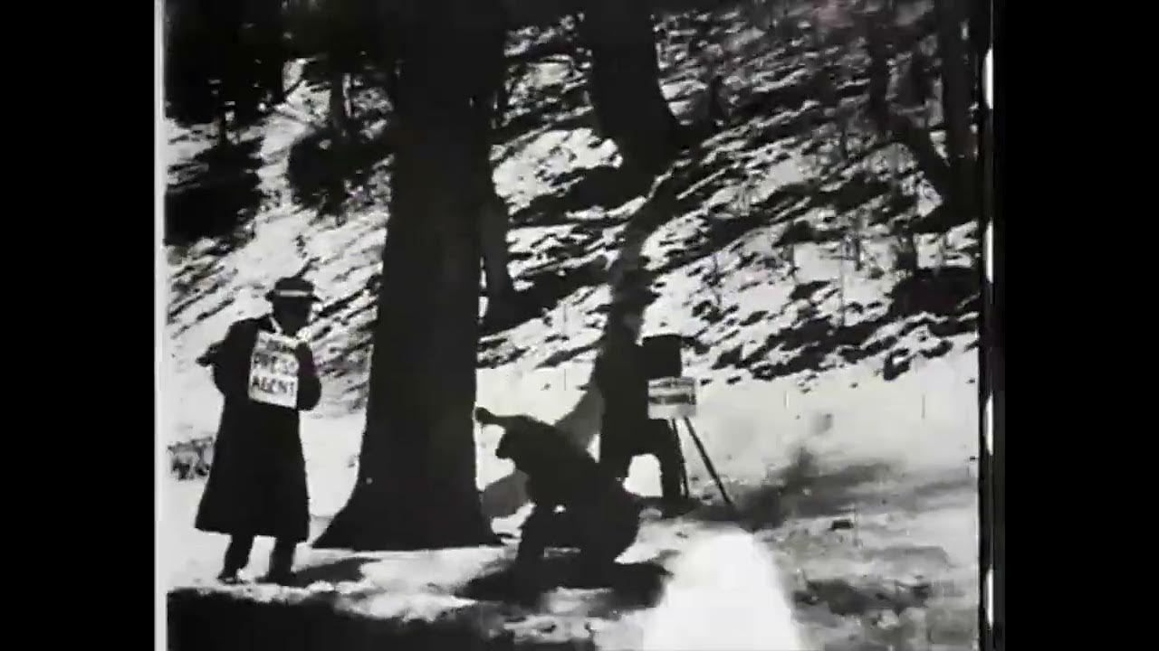Der Film dürfte auch einer der ersten gewesen sein, der Außenaufnahmen in einem verschneiten Wald zeigt, die im Winter 1900 / 1901 gedreht worden waren, und: er hat einen Schnitt. Die erste Szene endet an dem Baum, von dem die Katze fällt, nach dem Schnitt reitet der Jäger der kleinen Tiere auf die Kamera zu und hinter ihm gehen brav die beiden Presseleute, die aus heutiger Sicht ein weiteres Symbol für moderne Selbstdarstellung sind und für den Wunsch, die Dinge unter Kontrolle zu behalten und sich so zu präsentieren, wie man es selbst für richtig hält. Roosevelt war zweifelsohne eines der größten politischen Talente in der Geschichte eines reich mit politischen Talenten gesegneten Landes und es macht durchaus Spaß, zu sehen, dass er genau zur richtigen Zeit aktiv war, um Gegenstand der ersten politischen Satire zu werden. Auch wenn der Film nicht länger ist als der für das Jahr 1899 vorgstellte „The Enchanted Drawing“, sondern sogar etwas kürzer, man merkt deutlich, das Kino wird größer, fängt an, mehr zu wollen und zu wissen und bald sollte es Edwin S. Porter vergönnt sein, einen weiteren Meilenstein zu setzen. Es kommt nichts aus dem Nichts, als er „The Great Train Robbery“ im Jahr 1903 filmte, war er bereits ein erfahrener Regisseur, der Dutzende von Kurzfilmen realisiert hatte. Das Jahr 1903 betreffen, werden wir um diesen Film auch nicht herumkommen. Bestimmte hatte Theodore Roosevelt sich diesen 14-Minüter angeschaut, zumindest trauen wir ihm das zu.