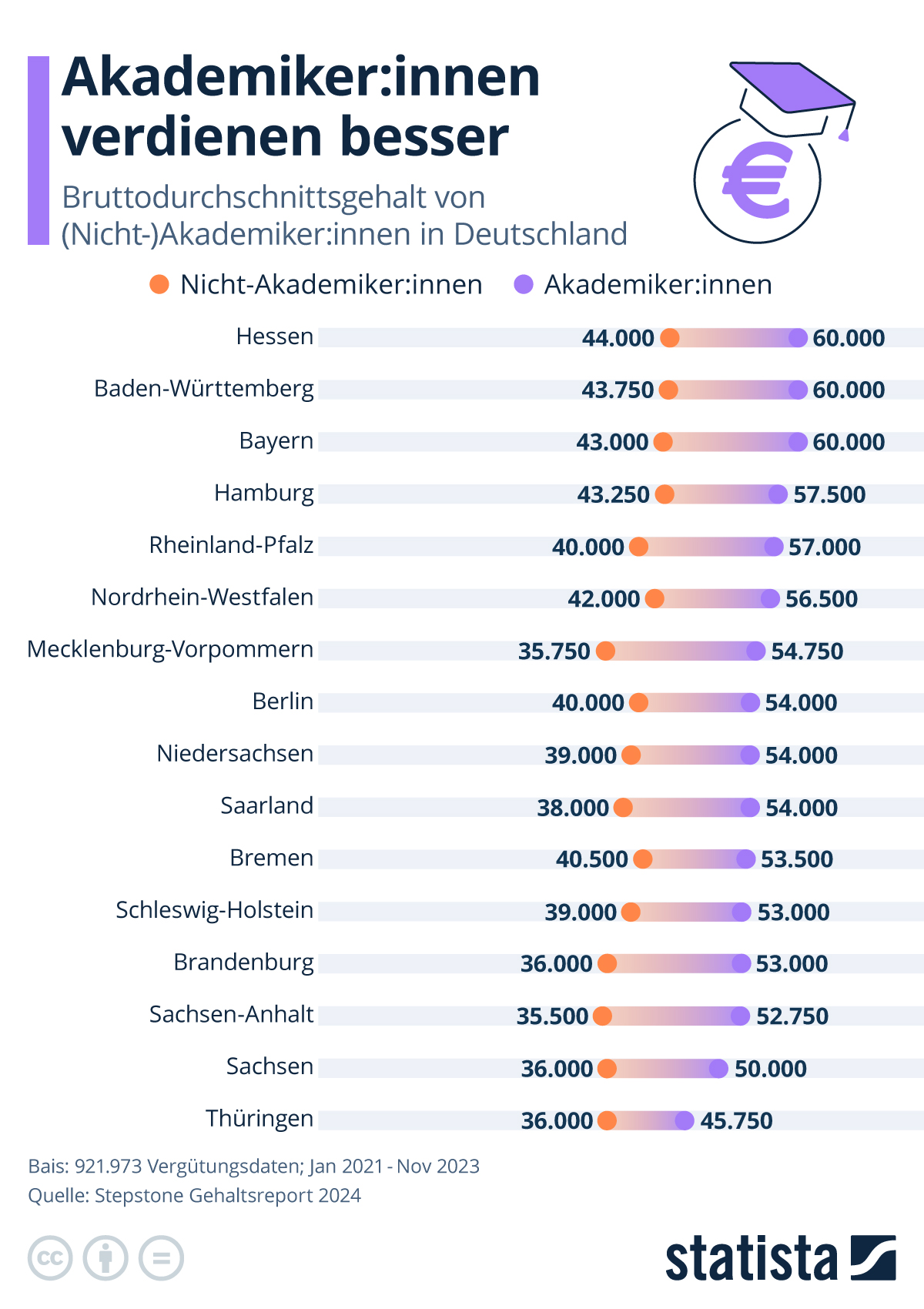 Infografik: Wie viel mehr verdienen Akademiker:innen? | Statista