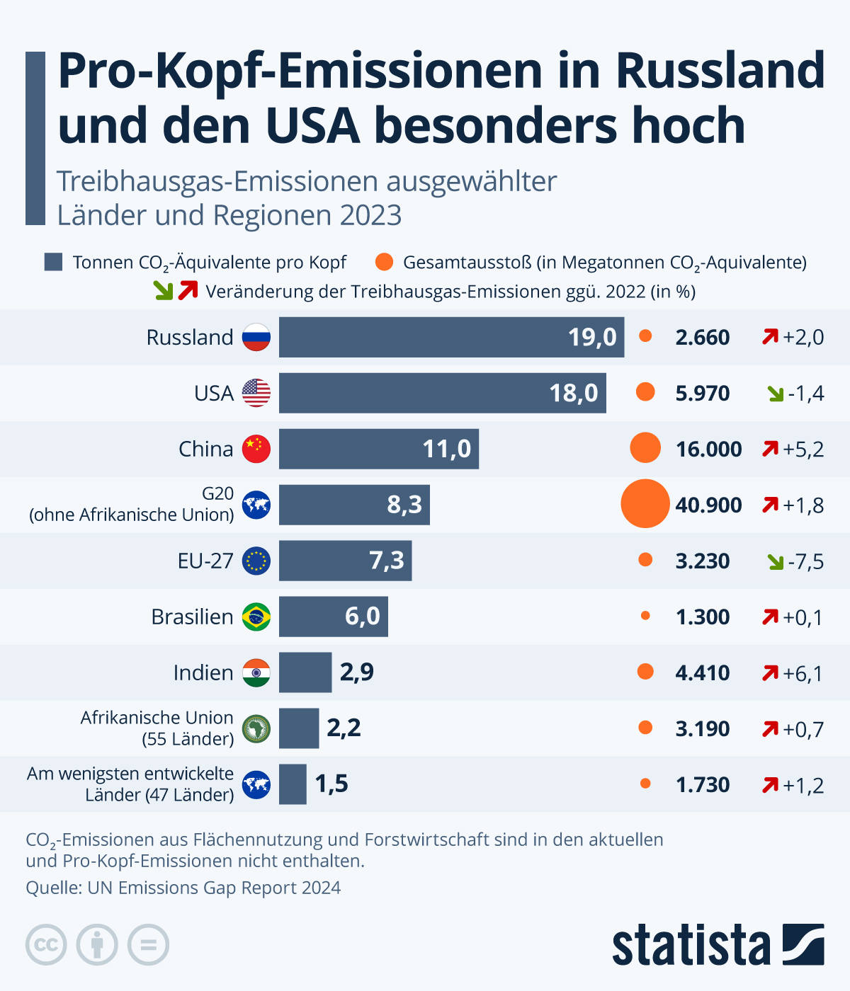 Infografik: Pro-Kopf-Emissionen in Russland und den USA besonders hoch | Statista