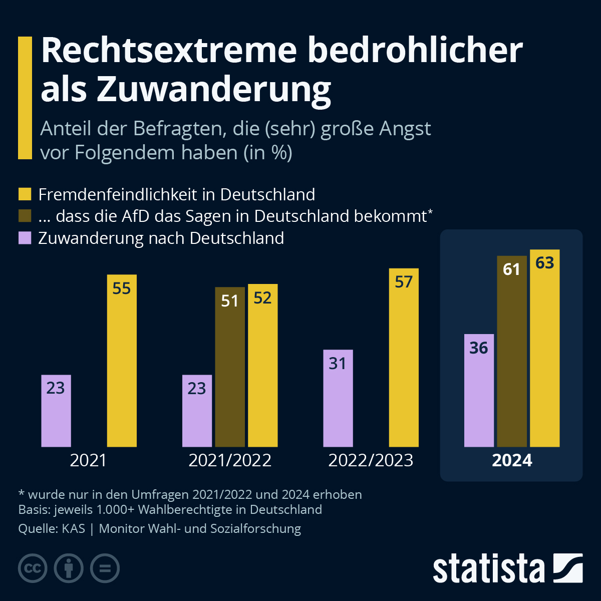 Infografik: Wovor hat Deutschland mehr Angst, Rechtsextremisten oder Ausländer? | Statista