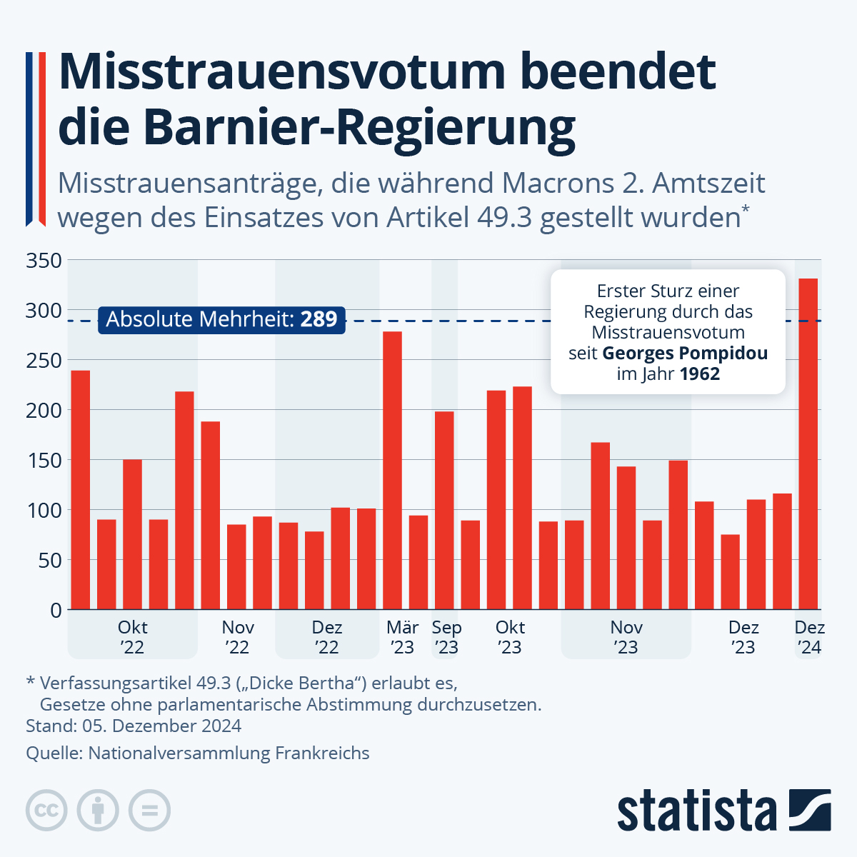 Infografik: Misstrauensvotum beendet die Barnier-Regierung | Statista