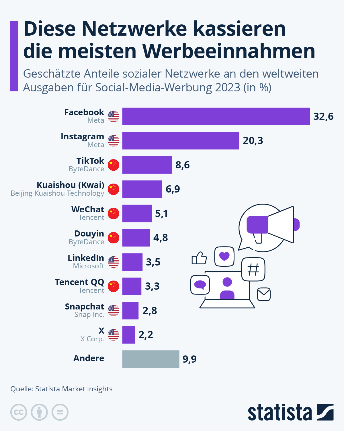 Infografik: Welche Sozialen Netzwerke bekommen die meisten Werbeeinnahmen? | Statista