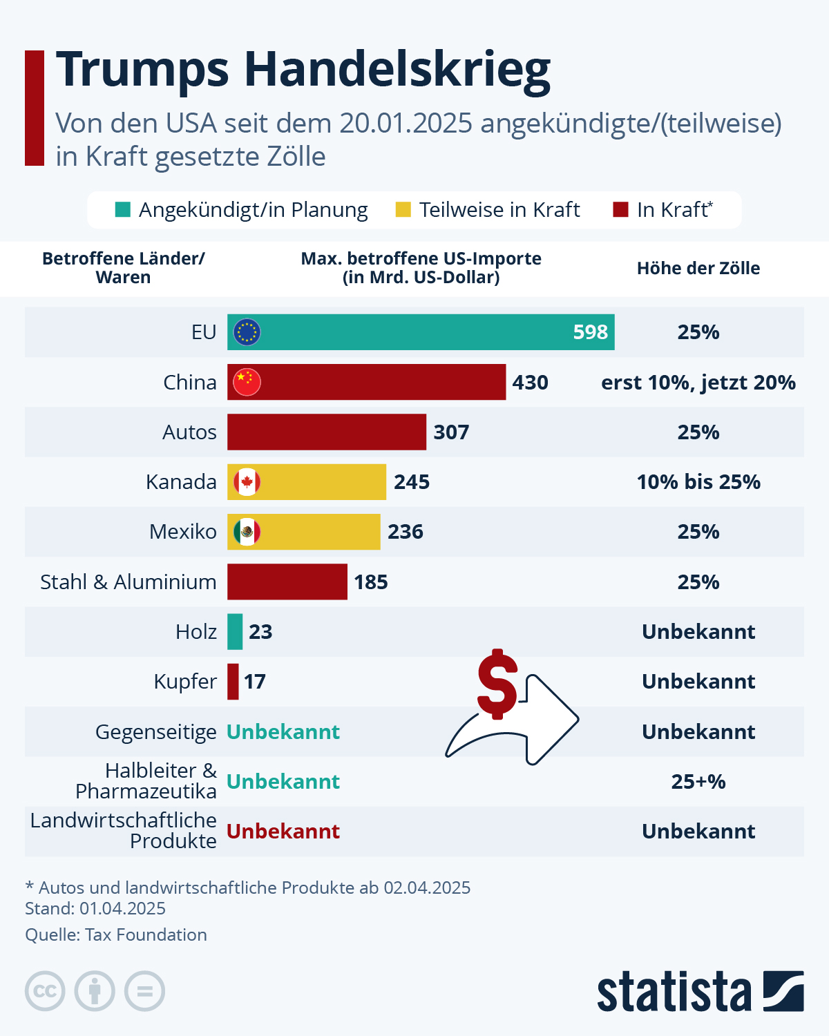02.04.2025 Infografik: Welche Zölle hat Donald Trump bisher beschlossen? | Statista