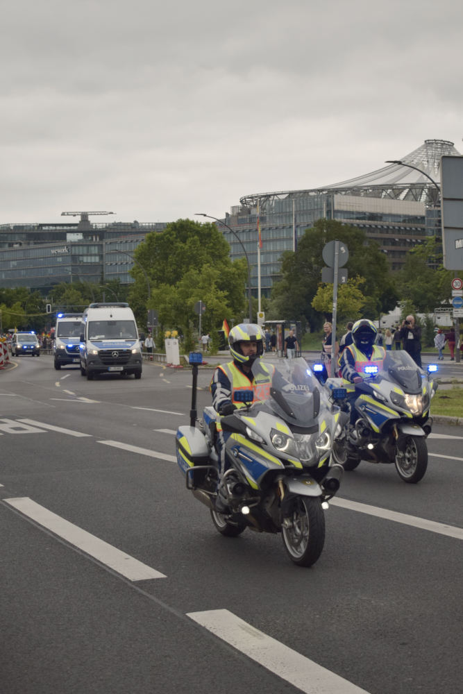 Vollständig wird es auch im zweiten Teil nicht werden, der in den nächsten Tagen erscheinen wird, weil der Zug immer wieder anhalten musste und an unserem Standplatz vor der Neuen Nationalgalerie um 17:45 noch nicht ganz vorbeigezogen war, als wir aus Zeitgründen die Parade verlassen mussten.