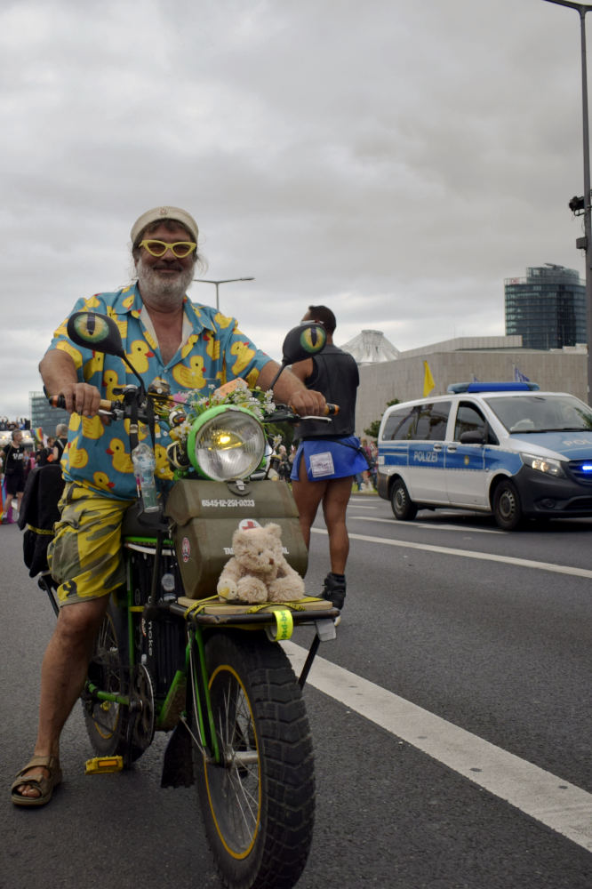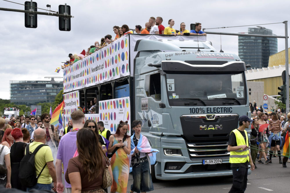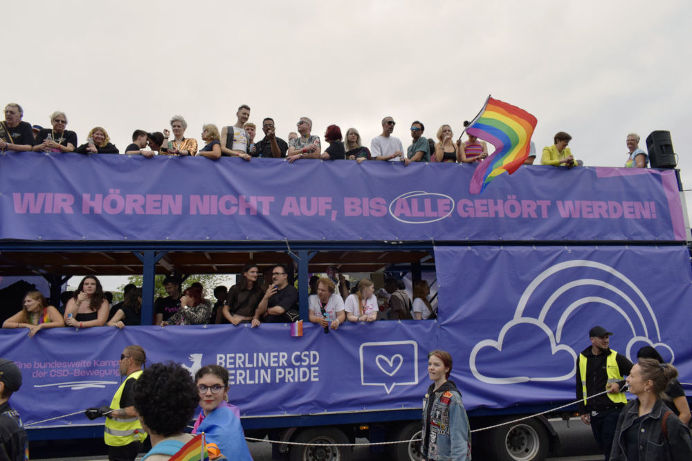 80 Wagen und, je nach Quelle, zwischen 100.000 und 500.000 Teilnehmende und Zuschauende, das sind die Zahlen der CSD-Parade von Berlin im Jahr 2025. Wir gehen nach unseren Beobachtungen eher von der höheren der beiden Zahlen aus, während die geringere eher auf die Zahl der Teilnehmenden zutreffen dürfte.