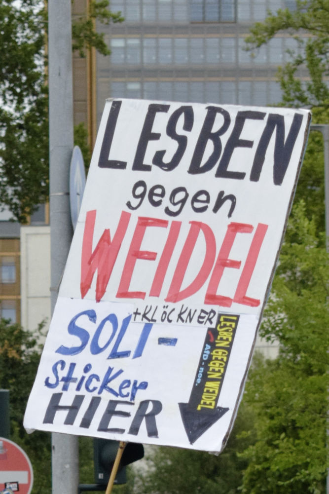 Bild ohne Menschen. Dass Weidel selbst queer ist, heißt nicht, dass sie etwas für queere Menschen tut, im Gegenteil, und gerade deshalb erfolgt eine Abgrenzung. Klöckner hat es dank ihres Einsatzes gegen queere Symbole dort, wo sie weithin sichtbar sind, in den letzten Monaten nachträglich aufs Plakat geschafft.