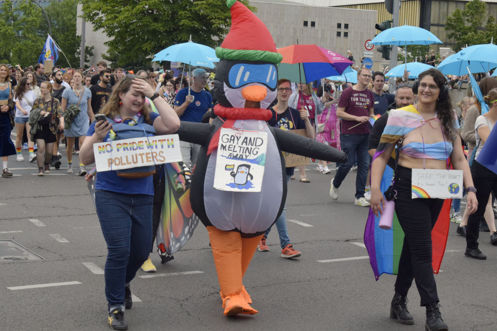 Auch der Klimaschutz hat einen Platz auf dieser Parade. Queere Menschen leben mit den anderen in dieser einen Welt und wir alle müssen versuchen, sie für alle gleichermaßen zu erhalten. Nun aber wieder viel Gay Pride ohne Kommentar …