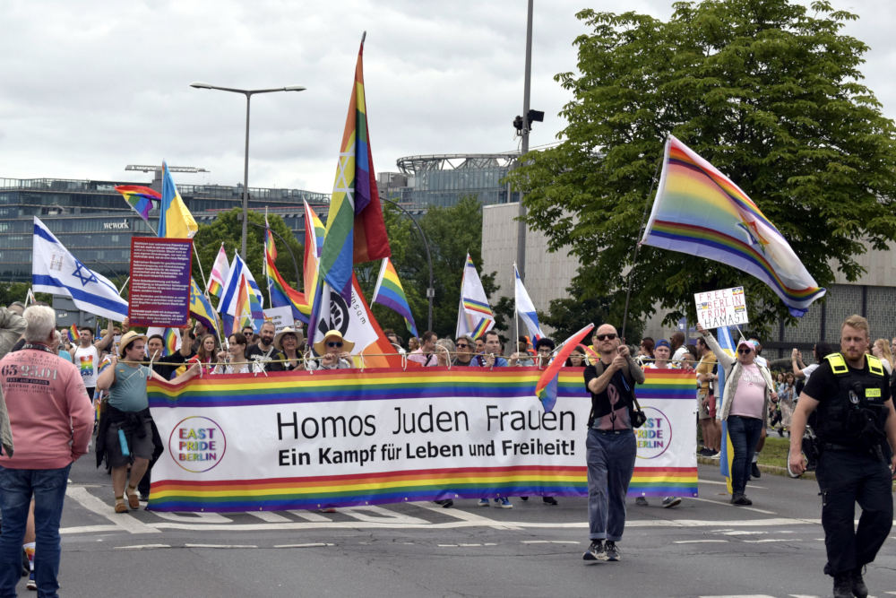 Was uns besonders berührt hätte, wäre ein gemeinsamer Auftritt jüdischer und palästinensischer queerer Menschen auf der offiziellen Parade gewesen. Vielleicht haben wir das auch verpasst. Wir haben, siehe oben, nicht die gesamte Parade sehen können, weil der Zug viel länger gebraucht hat als vorgesehen, um unseren Standort zu passieren.