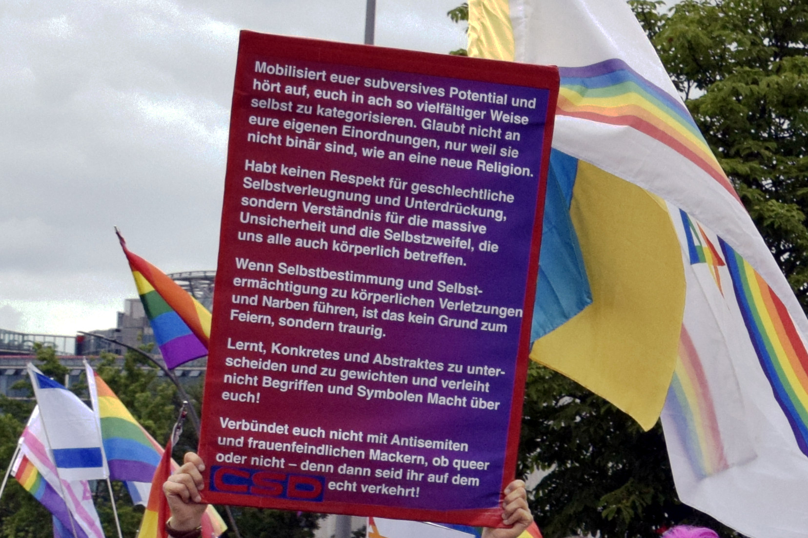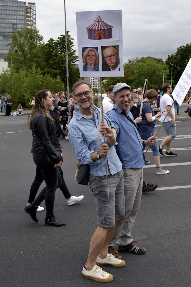 Nach einiger Überlegung haben wir uns entschieden, politische Aussagen zwar zu zeigen, aber nicht ausführlich zu kommentieren. Bei einigen davon hatten wir den Eindruck, dass der CSD nicht ganz frei von Instrumentalisierungsversuchen war, doch das meiste, was wir gesehen haben, fand unsere Zustimmung und alles blieb im Rahmen der Meinungsfreiheit.