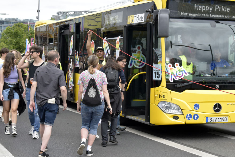 Auch dies eines der nach unserer Ansicht besseren Beispiele für die von bekannten Unternehmen gesponserten Wagen: städtisch, auch im Alltag einigermaßen inklusiv, und sie lassen das Motto des CSD für sich stehen, obwohl sie neben der BSR zu den größten Sprücheklopfern in der Stadt gehören.