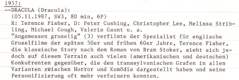 Ich habe den Film vermutlich nach den 1980ern nie wieder gesehen, aber ich glaube, er ist genauso britisch wie ein essenzieller Horrorfilm. Die Romanvorlage stammt ja auch von einem Briten und diese waren spätestens seit Edgar Allan Poe Genrekünstler in Sachen Crime und Horror in allen Varianten – sogar Frauen betätigten sich auf dem Gebiet, wie Mary Shelleys mit „Frankenstein“, und auffälligerweise spielen diese Handlungen eben nicht in Großbritannien, sondern in Mittel- und Osteuropa. Wie die Briten sagen: Der Balkan beginnt östlich des Ärmelkanals. Über die Art, wie die kirchliche Filmkritik in Deutschland mit verschiedenen Streifen umgegangen ist, haben wir vielfach reflektiert. Hätten die Moralisten zwanzig Jahre zuvor die Nazis bloß auch so widerlich gefunden …