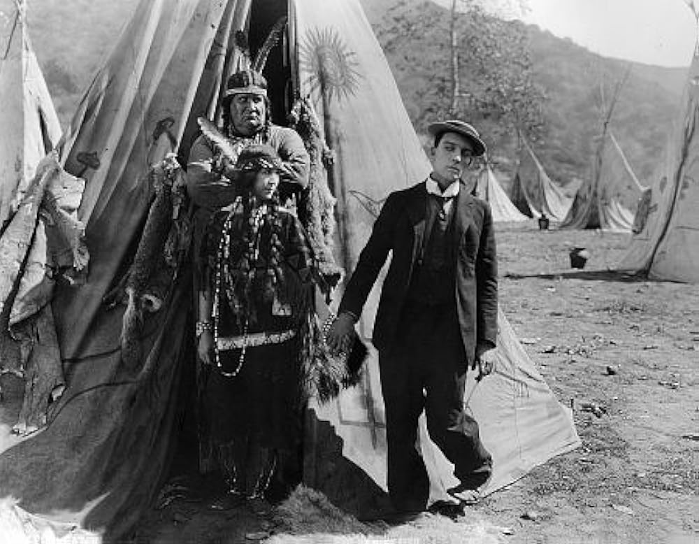 Dabei ist „The Paleface“ wirklich ein gelungener Film, auch, weil er eine eindeutige soziale Botschaft zugunsten der ursprünglichen Amerikaner hat, die hier in einem Reservat existieren und dann von gierigen Ölspekulanten auch noch um dieses Stückchen Land gebracht werden sollen. Es ist symbolisch von einem hohen, festen Zaun umgeben. Einlass findet man nur, wenn man ein massives Tor durchquert – allerdings dann doch recht leicht, wie der Schmetterlingssammler beweist, den Buster Keaton hier gibt. Hat Karl May bei ihm abgeschrieben? Wohl kaum, aber umgekehrt kannte Keaton diesen Autor wahrscheinlich auch nicht. Die Ureinwohner sind also drinnen eingesperrt und draußen toben sich die Weißen aus, anders als in den klassischen Western, in denen sich alle, Truppen und Zivilisten, in einem Fort versammeln, dort versuchen, eine Art Mini-Zivilisation aufrechtzuerhalten – um die Angriffe der wilden Rothäute abzuwehren.
