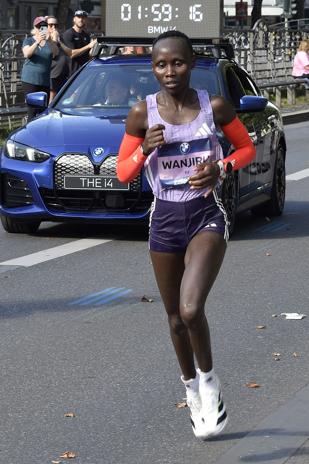 … und auf Rosemary Wanjiru, die spätere Siegerin bei den Frauen: