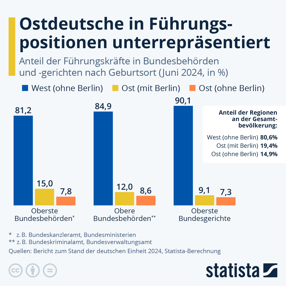 Infografik: Wie viele Ostdeutsche sind in Führungspositionen? | Statista